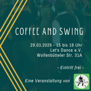 Am Sonntag, den 29. März findet erneut die Veranstaltung “Coffee & Swing” statt. An diesem Sonntag wieder unter der Schirmherrschaft unserer Freunde von Lets-dance-e.V. Von 15 bis 18 Uhr wollen wir gemeinsam tanzen. Für ein leckeres Kuchenbuffet sorgen wir selbstverständlich auch wieder. Unsere Freunde freuen uns über Spenden – der Eintritt ist frei.